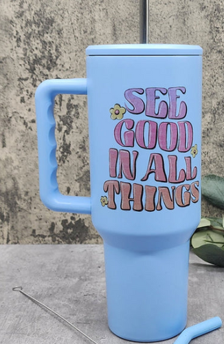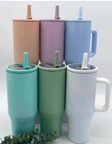 Custom sublimated decorated 40oz cup with flip top straw lid